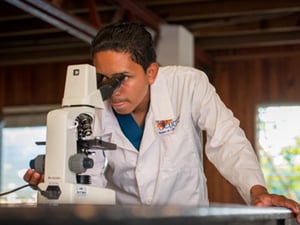 We also visit Tegucigalpa, the capital of Honduras, to see how we’re keeping kids out of gangs through World Vision’s “Youth Ready” program. We meet Rony Nuñez who was in a gang and lost many of his friends due to gang violence. As World Vision Honduras, National Director Jorge Galeano explains, World Vision has access to areas where most other organizations are not allowed. This is because we’re a faith-based organization and can work through 2,000 local churches to penetrate into the areas with gangs. We’re successful in turning around the lives of people like Rony, who is now studying to be a clinical lab technician (above).